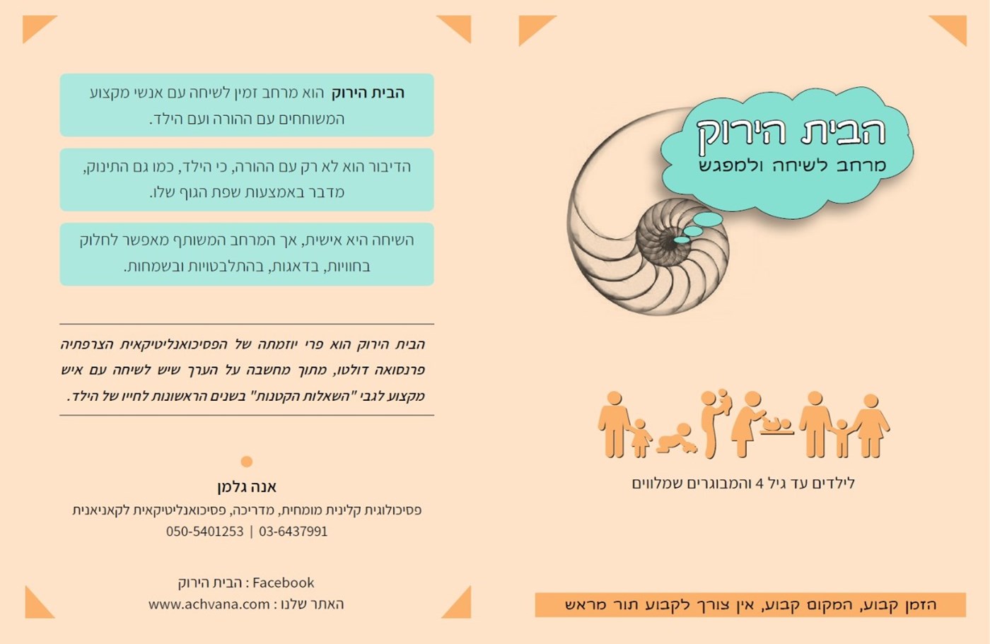 "שיח הבית הירוק" מתקיים במרחב ובזמן של הורים ושל אנשי מקצוע, שרוצים לשוחח על "השאלות הקטנות"